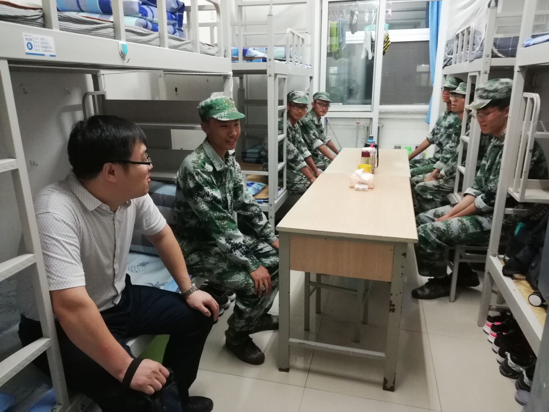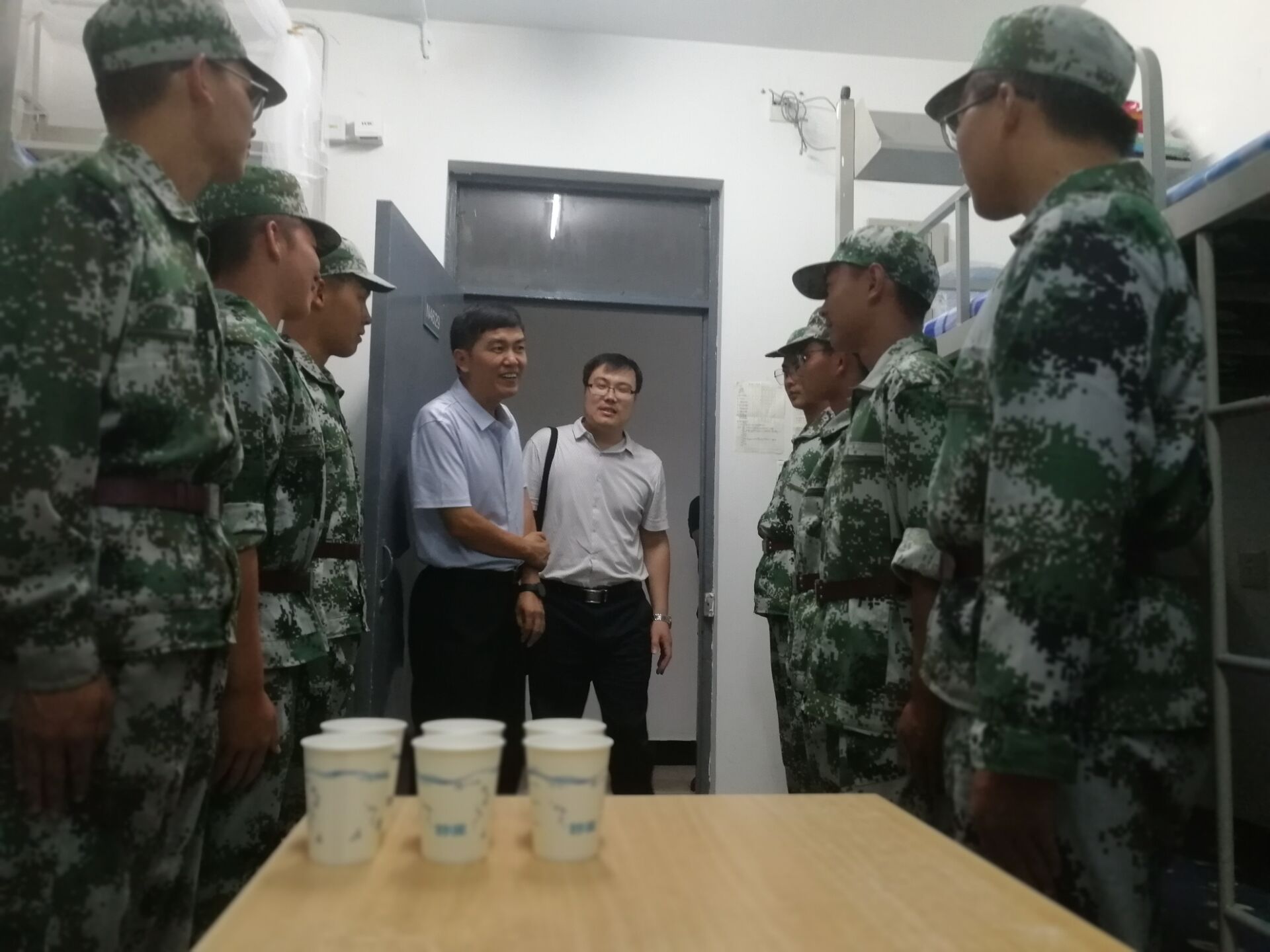 学校党委副书记李军在学生工作处领导的陪同下也来到了新葡官网新生宿舍看望新生,李书记一个一个宿舍的走进去,亲切的与同学们交谈,了解学生军训和生活情况,鼓励大家坚持完成军训任务。