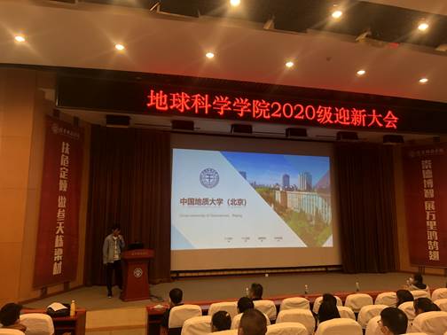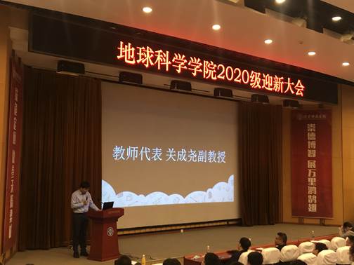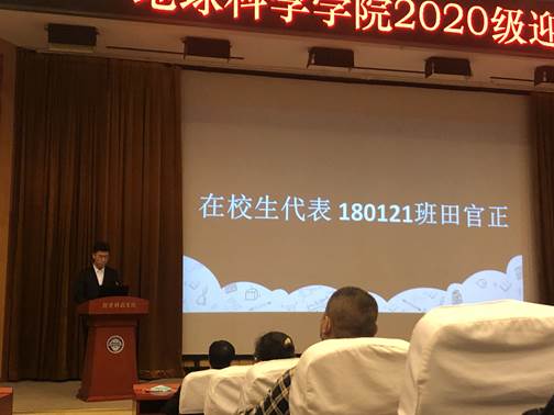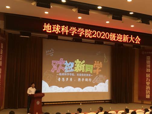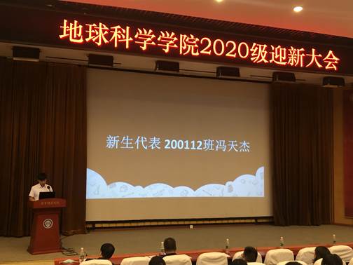 大会在嘹亮的国歌声中开幕,与会的学院领导、学科带头人、教授、各教研室主任和教师代表先后亮相,展现了新葡官网雄厚的师资力量和良好的教师风采。会上,教师代表关成尧副教授首先发言,引经据典,对投身地学的新鲜血液表示欢迎并给予殷殷希望。优秀校友代表郭明明风趣幽默的辞藻、令人羡慕的学生履历,燃起了学生们奋勇上进的激情,将大会推向了高潮。在校生代表田官正和新生代表冯天杰依次做了热情洋溢的发言后,学院院长姜纪沂教授做了语重心长,情真意切的致辞。