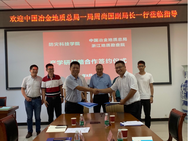 8月27日下午,防灾科技学院与中国冶金地质总局浙江地质勘查院产学研战略合作框架协议签约仪式在长庚楼126顺利举行,防灾科技学院主持行政工作副校长任云生与中国冶金地质总局一局副局长周尚国出席仪式并致辞,3003新葡平台院长姜纪沂和中国冶金地质总局浙江地质勘查院院长李巨宝代表双方签署了协议,仪式由3003新葡平台副院长孙珍军主持。