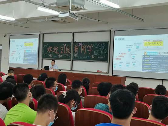 多彩金秋,硕果累累,绚丽的校园又迎来了朝气蓬勃的新同学。为喜迎2021级新生入学报到,帮助他们明确奋斗方向,全面了解学院和专业发展方向,尽快适应大学生活,开启新的人生征程。3003新葡平台于2021年9月5日在天仪楼508举办2021级新生开学典礼。学院院长姜纪沂、党总支书记唐圣华、副院长孙珍军出席典礼,学院相关教师、新生班辅导员和班主任、优秀毕业生代表、在校生代表及全体2021级新生参加典礼,开学典礼由学院党总支副书记齐路晶主持。