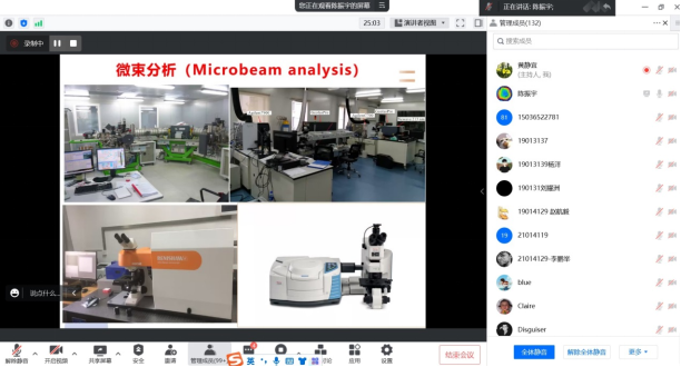 陈振宇研究员以我国嫦娥五号月球探测器所携带的月球表面样品为研究对象,讲述了微区分析技术在月球样品研究中的应用。并就他所在研究团队申请到的月球样品研究进展重点为大家讲述了电子探针分析技术的原理、功能及地质学应用。学术报告结束之后,陈振宇研究员与广大师生就电子探针分析热点交流,并对师生感兴趣的问题进行了一一解答。