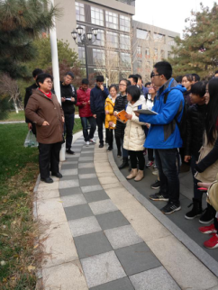 蒋老师兴致勃勃的为同学们讲解了南校区陈列岩石的相关知识。从南校区南门的岩石讲起,沿着校园小道一路走来,蒋老师对校园内的各种岩石的名称、种类、形成过程以及特点进行了详细的讲解。在思玄苑,蒋老师让同学们进行交流互动,一起讨论,现场气氛热烈。老师认真讲解、师生默契配合,表现了冬日里同学们对学习的积极性。