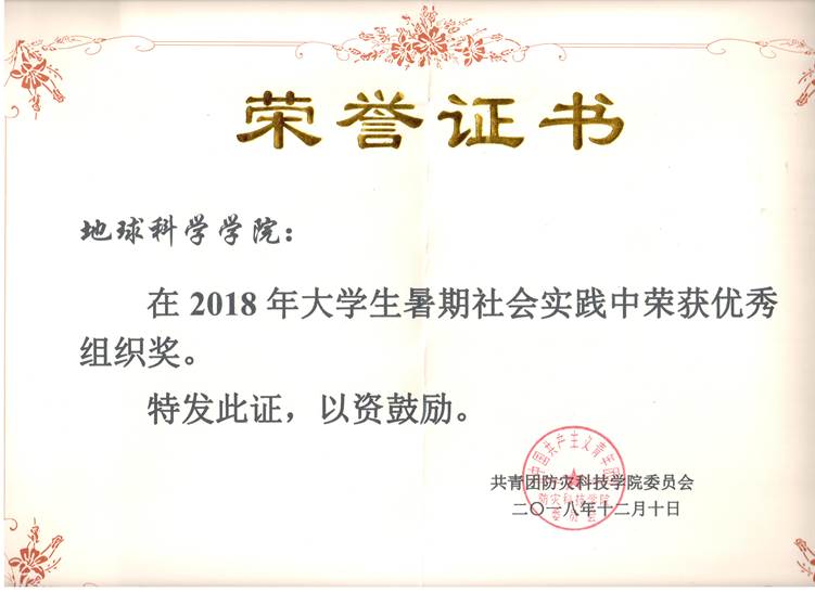 12月10日晚,学校在图书馆报告厅举办2018年大学生暑期社会实践成果报告会,会上对2018年大学生暑期社会实践获奖集体和团队进行了表彰,新葡官网获得“优秀组织奖”,这也是新葡官网继原地震科学系于2015年、2016年和2017年连续三年获得该奖的基础上第四次获得“优秀组织奖”。