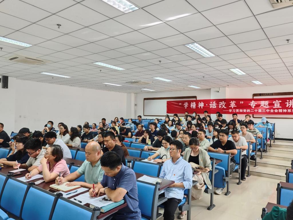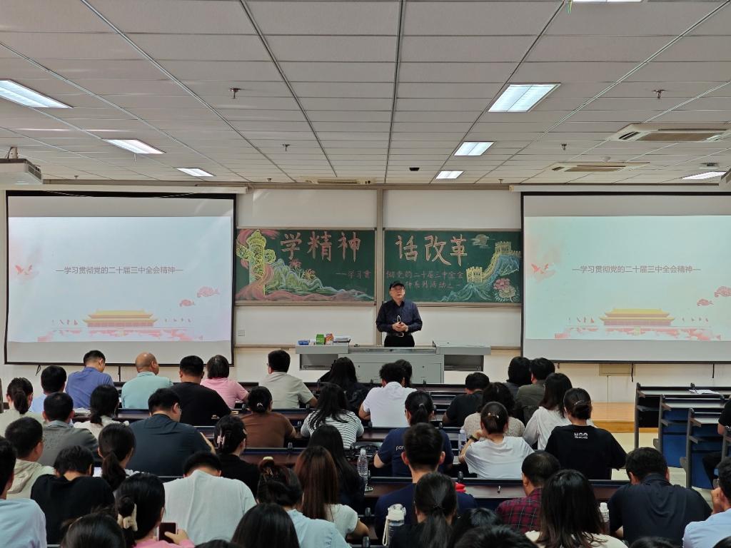李君教授从坚持党的领导这个关键、推进党和国家治理体系和治理能力现代化这个要害、完善中国特色社会主义制度这个核心切入,对全会精神进行系统阐释和深入解读。报告讲清楚了全会的重大政治意义、理论意义、实践意义,深入宣讲了习近平总书记关于全面深化改革的一系列新思想、新观点、新论断,深入宣讲了习近平总书记在党的二十届三中全会上的重要讲话精神,深入宣讲了全会《决定》提出的进一步全面深化改革的重大举措,深入宣讲了贯彻落实全会精神的基本要求,帮助学院师生进一步深化了对全会精神的理解。