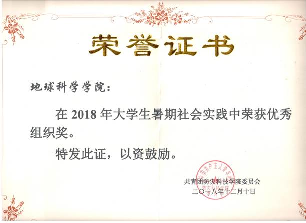 10月31日晚,学校在图书馆报告厅举办2019年大学生暑期社会实践成果报告会,会上对2019年大学生暑期社会实践获奖集体和团队进行了表彰,新葡官网获得“优秀组织奖”,这也是新葡官网继原地震科学系于2015年、2016年、2017年、2018年连续四年获得该奖的基础上第五次获得“优秀组织奖”。